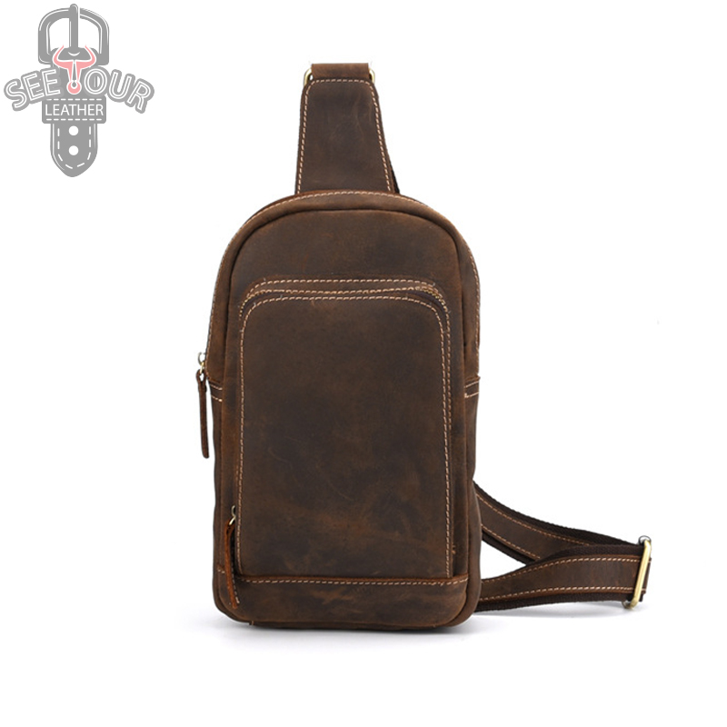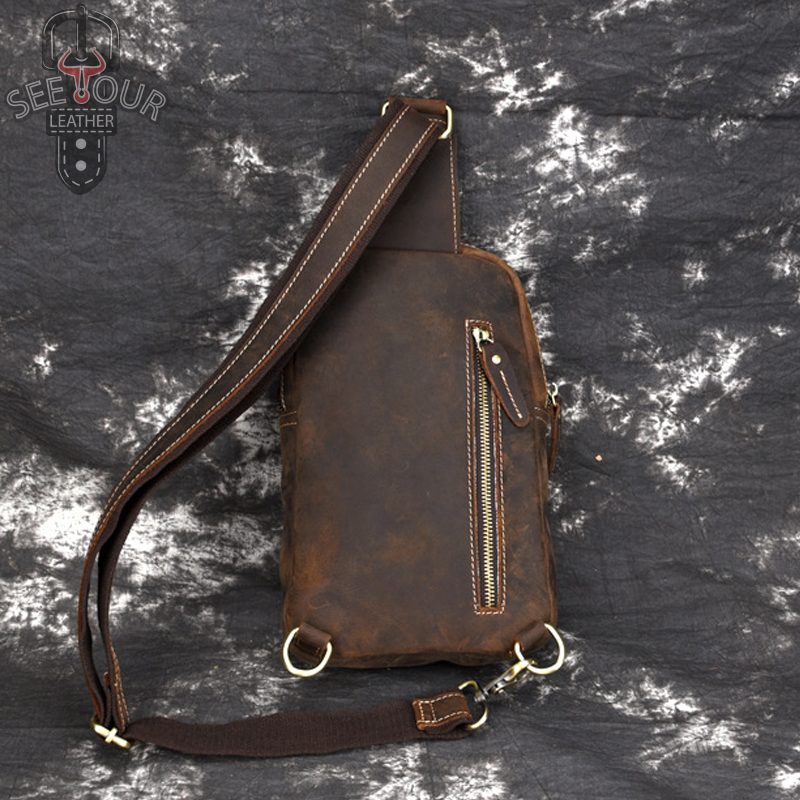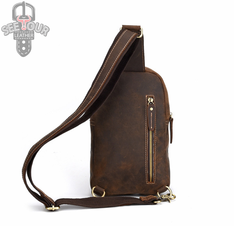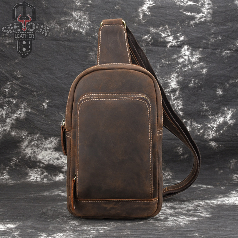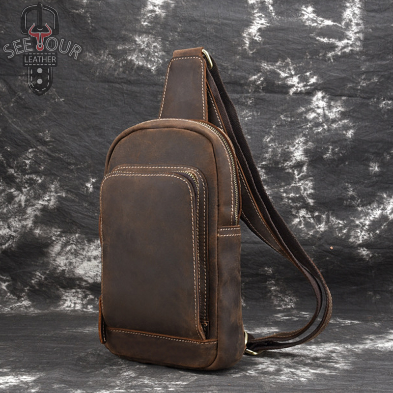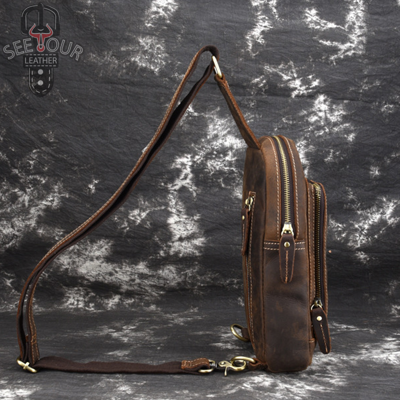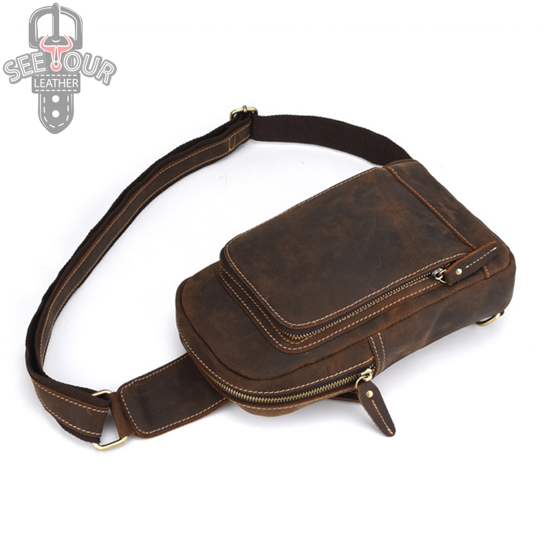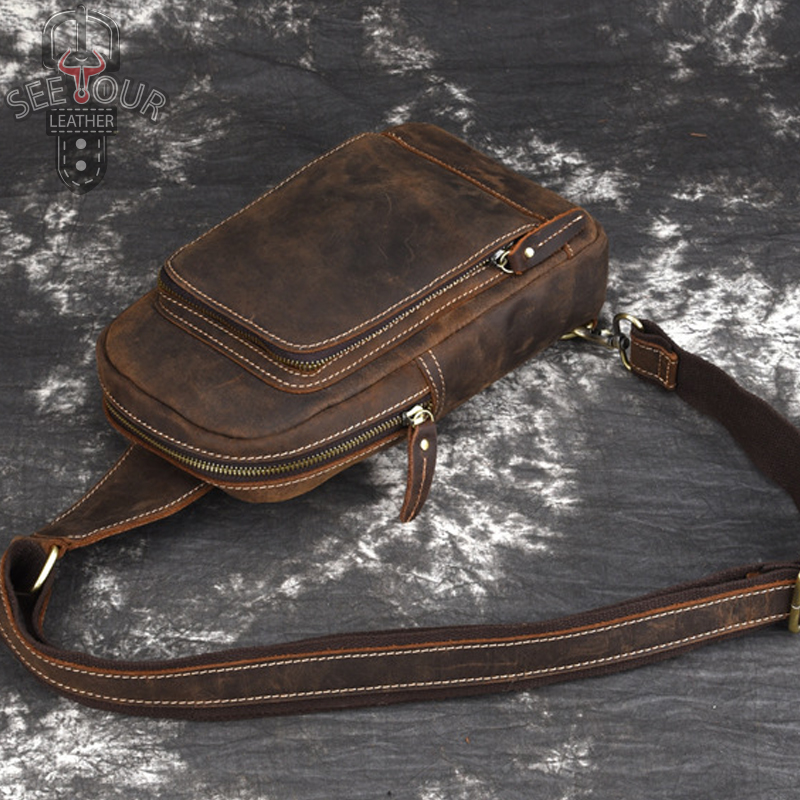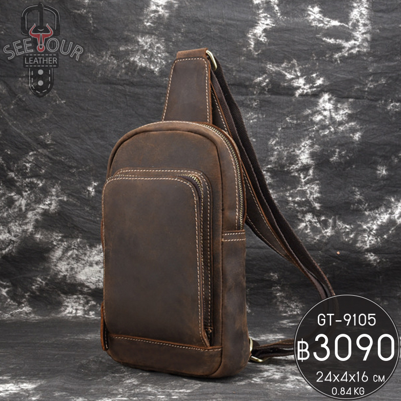 GT-9105 กระเป๋าคาดอก หนังนูบัค สีน้ำตาลเข้ม